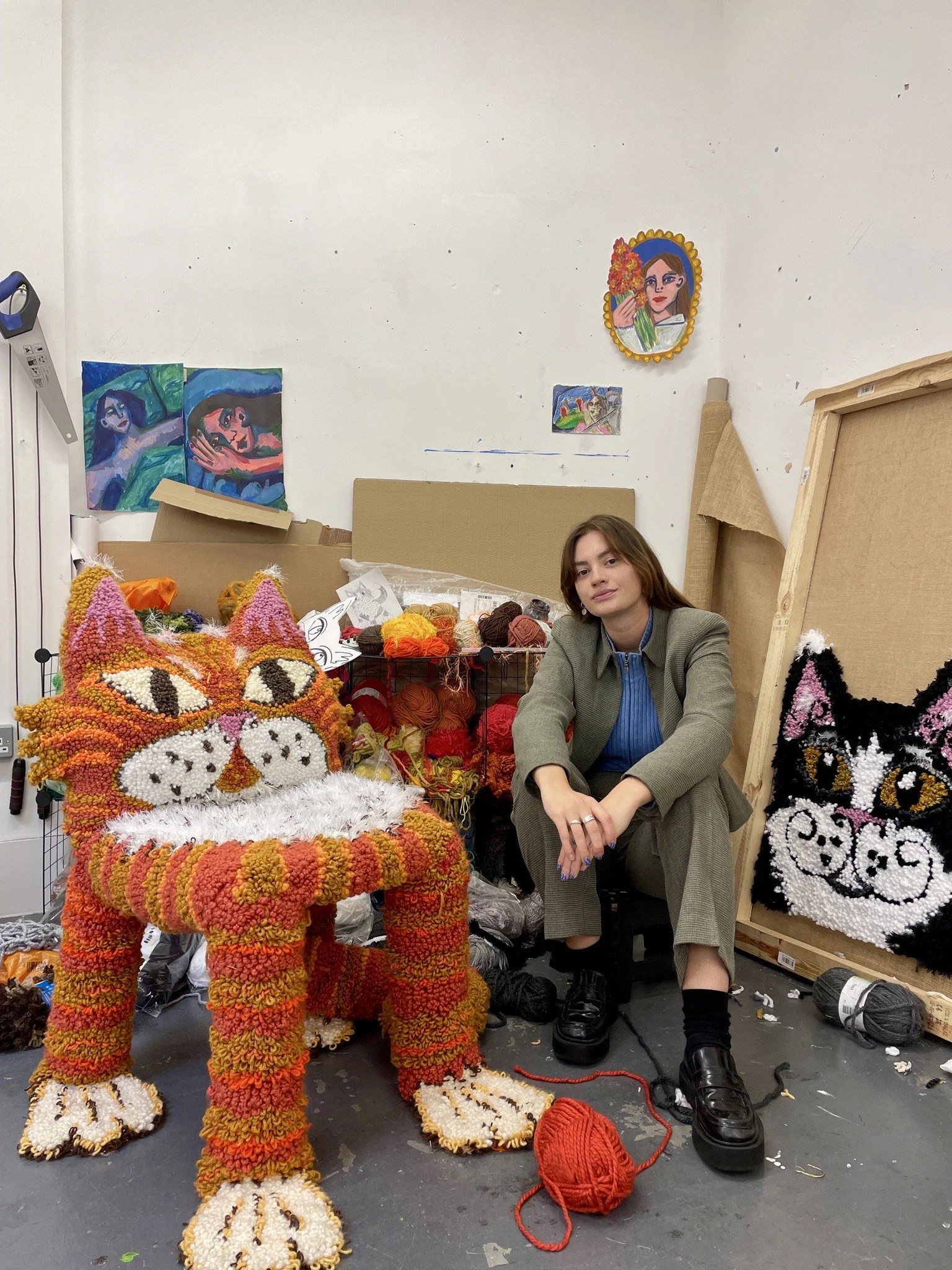 Selby uses the technique of rug punching to create her textile works. This medium allows her to create a physical sense of comfort through the soft textures and the relaxing time consuming nature of the process. Rug punching also allows Selby to reflect on her practice’s wider themes of the domestic space, home and the mundane.